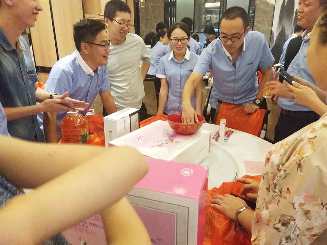 無博餅,不中秋。作為福建廈門幾百年以來獨具特色的中秋習(xí)俗,大家都期待這一趣味活動搏個好彩頭。一秀、二舉、四進、狀元……伴隨著歡笑聲,吶喊聲,一份份中秋好禮接連送至每個職員手中,“狀元王中王”的角逐更是將晚宴的氣氛推向高潮。