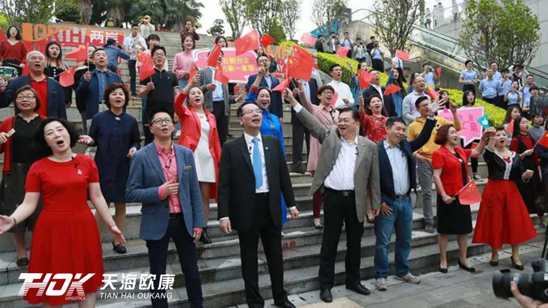? ? ? ? 2019年4月12日上午,廈門北站臺灣青年雙創基地中庭人潮涌動,聚集1000多名海峽兩岸優秀企業家、兩岸創業青年、臺商企業職工、兩岸藝術家、集美大學音樂團、廈門北站鐵路職工及高新技術產業員工。9時許,伴隨著廈門愛樂樂團悠揚的樂曲聲,廣場四周人頭攢動、大家不約而同地匯聚在廣場中央,圍繞在由廈門企業與企業家協會會長、廈門臺商協會會長、廈門北站臺灣青年雙創基地執行長及兩岸優秀企業家(天海歐康總裁曾巖女士入列)等組成的合唱團周圍,齊聲高唱《我和我的祖國》。