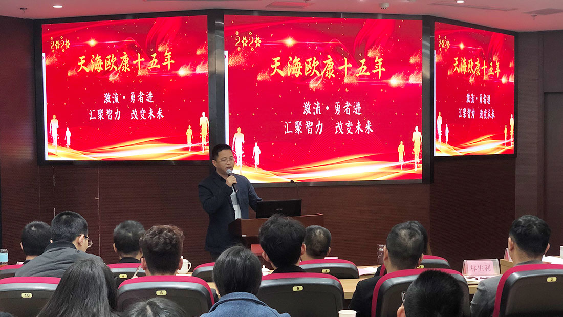 ? ? ? ? 董事長丁勇先生首先做主題發言,回望2019征程,面對復雜嚴峻的市場形勢和艱巨繁重的企業發展任務,在天海歐康全體員工艱苦卓越的共同努力下,團結一致迎難而上。機遇與挑戰并存的2020年,也是天海歐康發展的第16年,希望全體員工繼續披荊斬棘,向“建立全球領先的智慧物流及智能制造系統綜合解決方案提供商”的目標和“助力中國智造、引領工業4.0時代潮流”的愿景繼續奮斗。