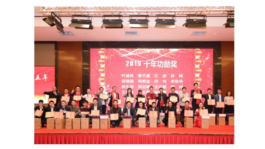 ? ? ? ? 尾牙宴期間,對2019年度優秀團隊、優秀員工、技術精英、十年功勛等獲獎部門及員工進行表彰。同時,對本年度終驗項目的所有參與員工進行表彰。天海歐康的過往與未來離不開各位員工兢兢業業的努力,希望所有天海歐康人“只爭朝夕、不負韶華”。