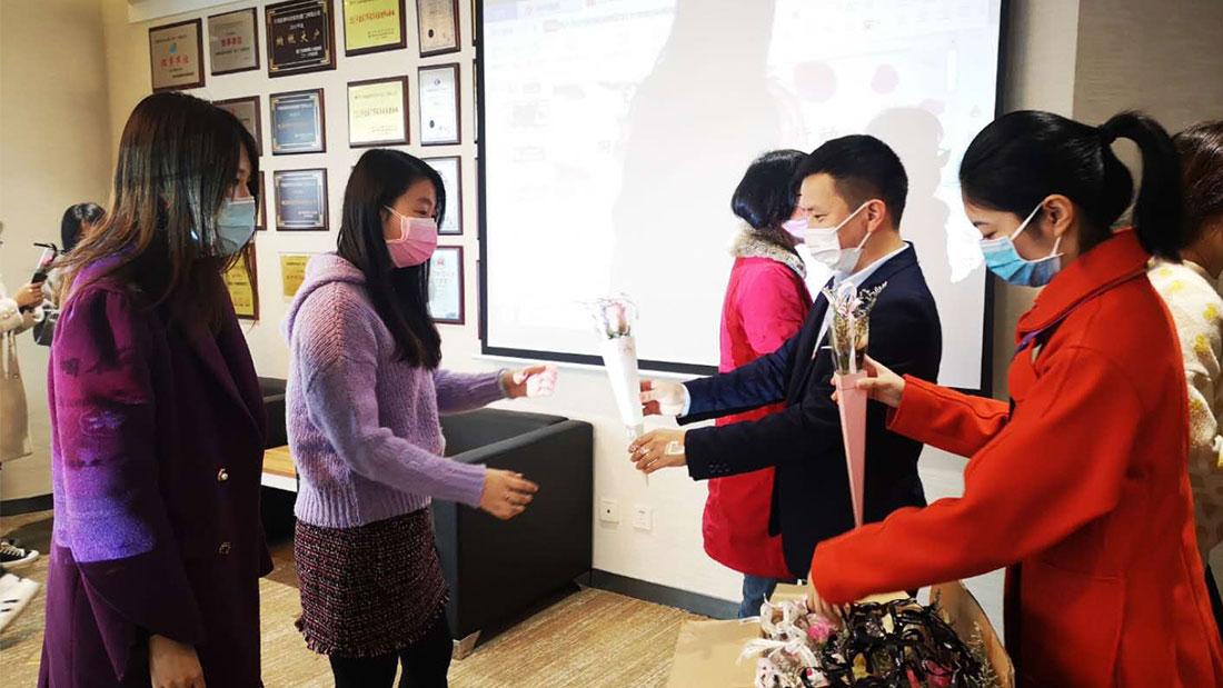 2020年3月6日下午,工會主席發表了熱情洋溢的講話,為女員工們送上誠摯的節日祝福。黨支部書記為大家送上精美的鮮花與美好祝愿。黨支部宣傳委員代表天海大家庭為每一位女神書寫深情款款的祝福卡片,手營造溫馨、溫情的節日氣氛。大家共話疫情防護知識,同向抗疫巾幗祈禱致敬,也向重疫區未返崗員工及其家屬們問候與祝福。