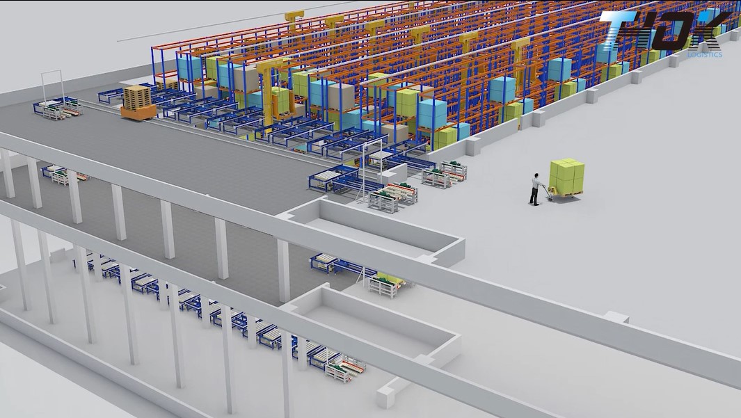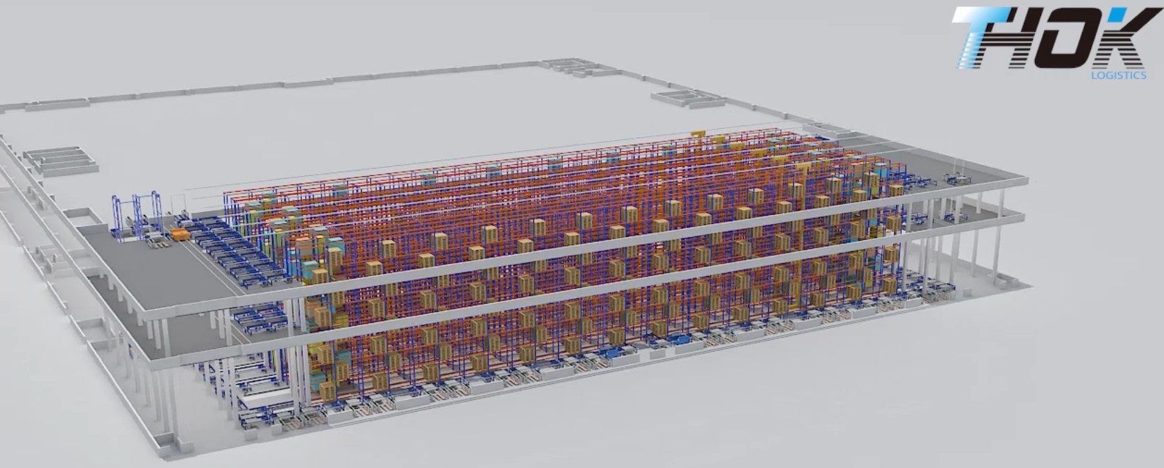 根據客戶的需求,本方案中樓層一共設計三層,貨位5184個,巷道堆垛機6臺,提升機2臺,出入庫系統1套,其中關鍵設備堆垛機、RGV、提升機及輸送系統屬天海歐康自主研發、設計和生產,系統成熟穩定,產品質量和項目實施有保障。建成后的效果圖: