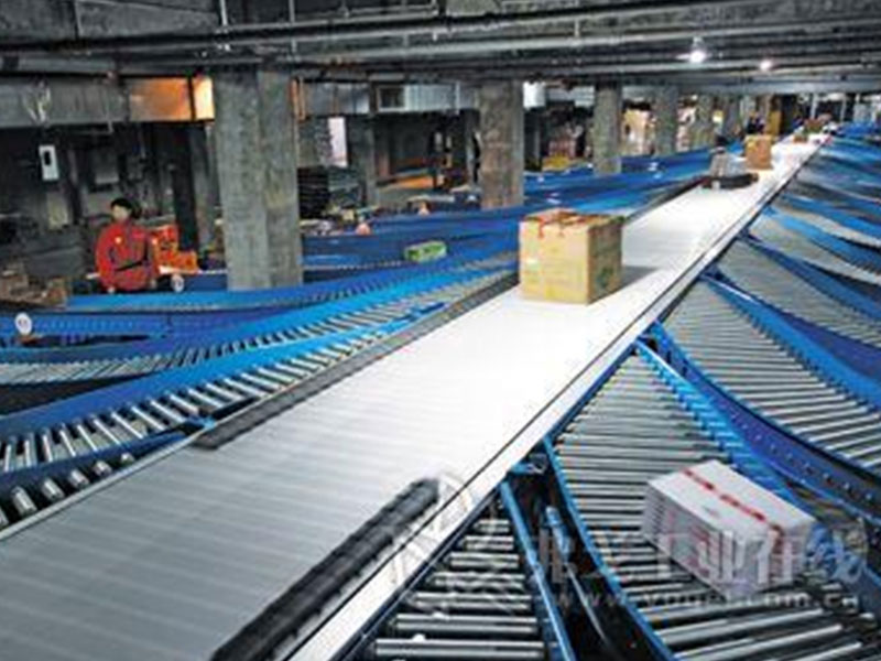 天海歐康滑靴式分揀機是一種水平,高速的物流輸送設備。分揀機的承載面由等寬、擠出成型的鋁承載板構成,它能載運各種尺寸的物品。承載板鏈接著驅動鏈條,在焊接成的鋼制機身內的支撐和導向輪上運行。平時滑塊停止在輸送機的側邊,滑塊的下部有銷子與條板下導向桿聯結,通過計算機控制,當被分揀的貨物到達指定道口時,控制器使導向滑塊有序地自動向輸送機的對面一側滑動,把貨物推人分揀道口,從而商品就被引出主輸送機。這種方式是將商品側向逐漸推出,并不沖擊商品,故商品不容易損傷,它對分揀商品的形狀和大小適用范圍較廣,是目前國內外應用廣泛的的高速分揀機。